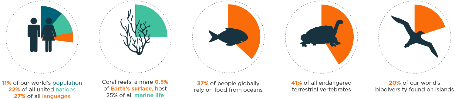 Islands-marine ecosystems are host to some of the highest concentrations of plant, animal, and human diversity. Islands and oceans are essential to: