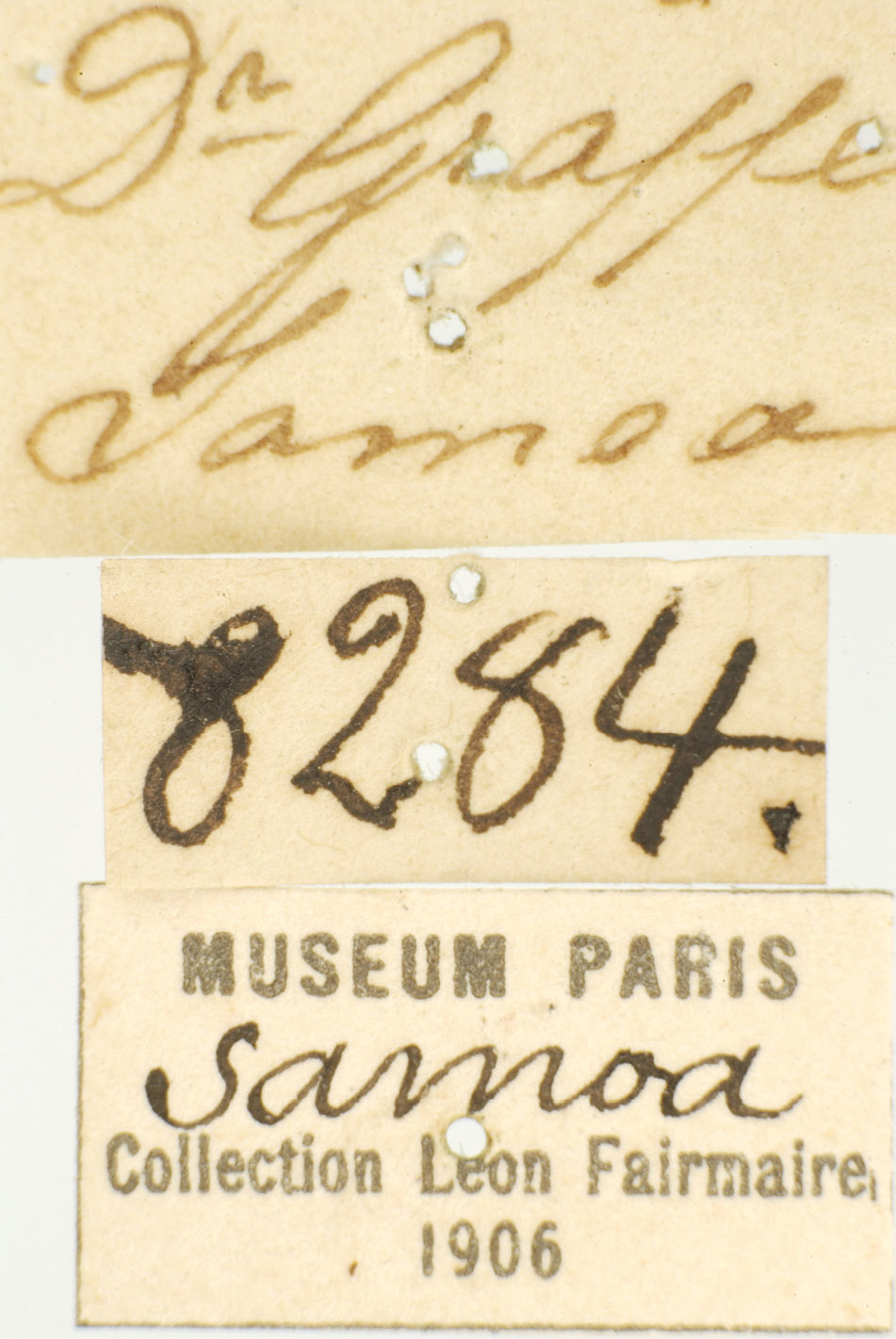 His collection ended up in his employer’s museum–Museum Godeffroy. Johann Godeffroy is believed to have subsequently loaned or sold Graeffe’s collection of beetles to French entomologist Leon Fairmaire. Fairmaire, if you’re not familiar, wrote 450 papers on beetles in his lifetime. Upon Fairmaire’s death, the so-named “Fairmaire Collection” of beetle specimens collected by Graeffi was transferred to the National d’Historie Naturelle (French National Museum of Natural History) in Paris.