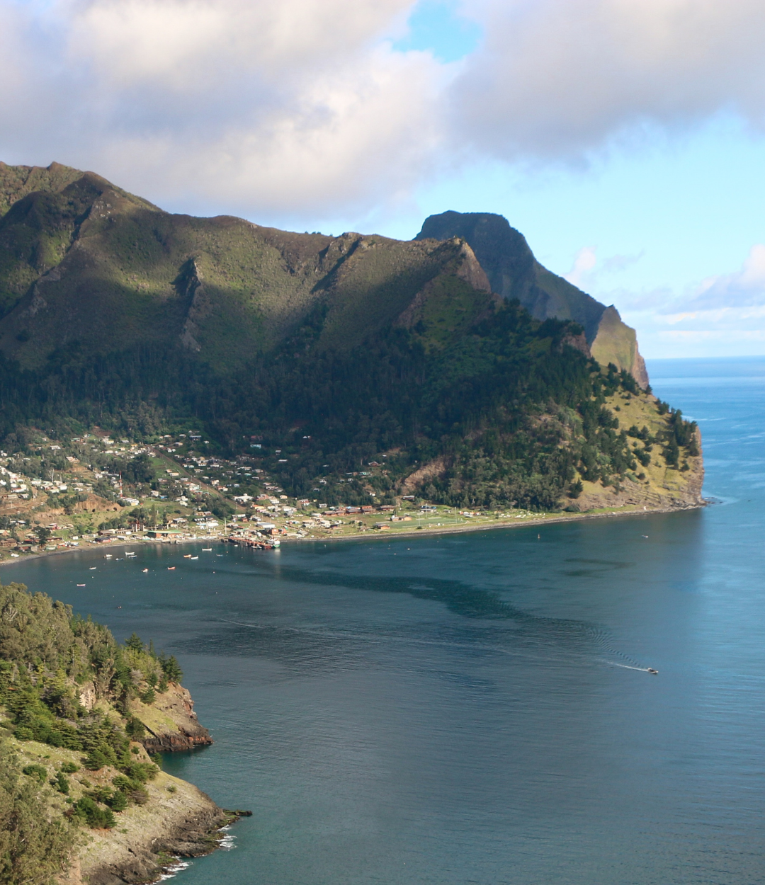 Part of the Juan Fernández Archipelago, Robinson Crusoe Island hosts more endemic species than the Galápagos. About half the size of Manhattan, it features rugged terrain with steep cliffs and dense forests and is home to a rich mix of marine and terrestrial life, including the Juan Fernández Fur Seal, the Critically Endangered Juan Fernández Firecrown Hummingbird, and the Pink-footed Shearwater.